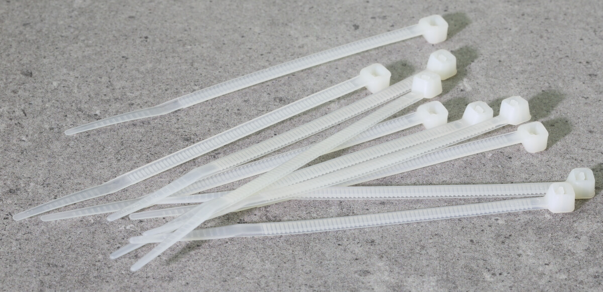 10 Stück Kabelbinder 3,6 mm x 100 mm naturfarben.